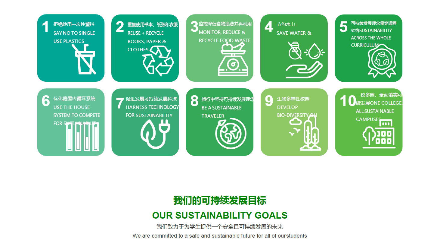 We will provide our students with exciting opportunities, promote enhanced wellbeing through smart design decisions, integrate sustainability into the curriculum, and demonstrate to our students, through our own actions, that their actions really do make a difference in a world that is facing increasing challenges. In all that we do, we believe that ‘students come first’ and that this commitment extends to ensuring that we equip them with the skills and knowledge to act responsibly now and to go on to become the world’s future global sustainability leaders. We are committed to creating opportunities for our students to make a difference both at Dehong and within their other communities. We want a commitment to sustainability to become embedded in our students' collective consciousness.