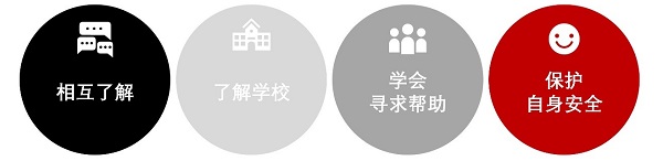 “保护我的在校安全”(Keeping Me Safe at School)是我们为德闳学生发展的一套教学项目。基于以下4大主题,班主任对如何使用圆圈解决方式(Circle Solution)进行教学,已经经历了完整专业的培训。