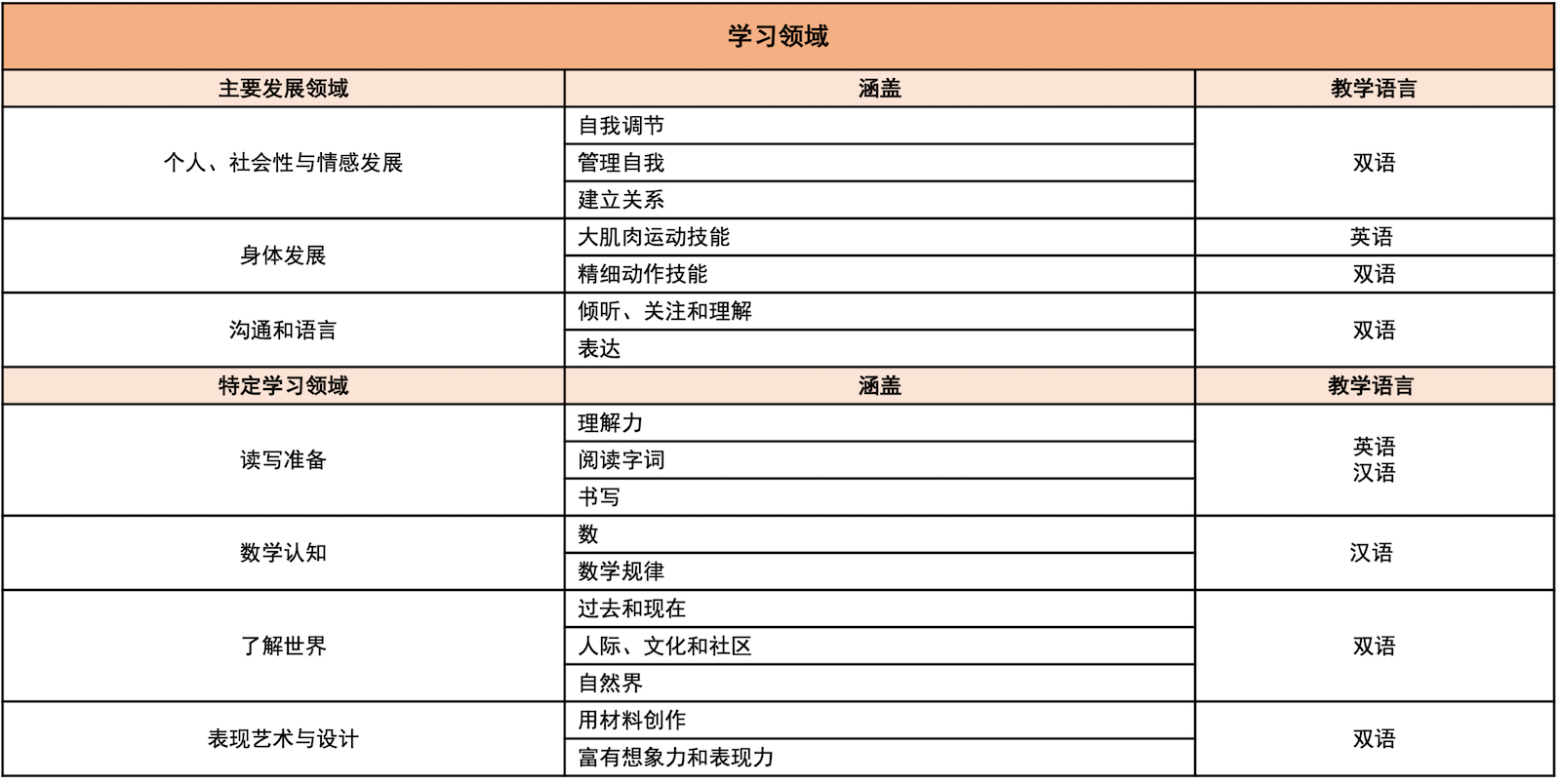 我们会根据《3-6岁儿童学习与发展指南》和EYFS框架中所要学习的领域,为孩子们提供双语双文化的学习环境。