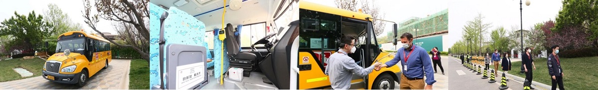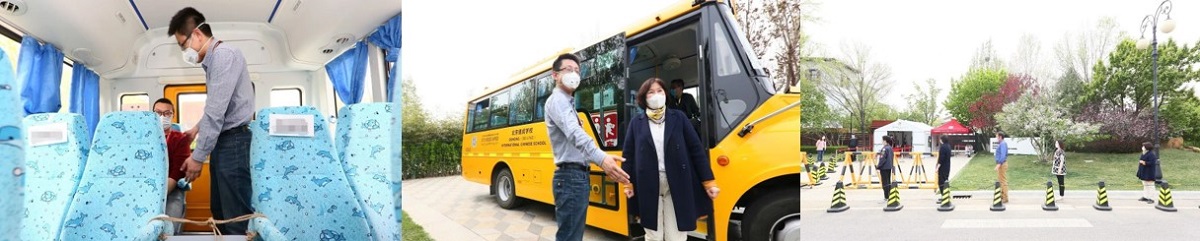 学生在校车内需按Z字形就坐,保持安全距离,最后一排为预留隔离区域。乘车全程全员必须佩戴口罩。校车行驶过程中,前后车窗微开,保持车内空气流通。