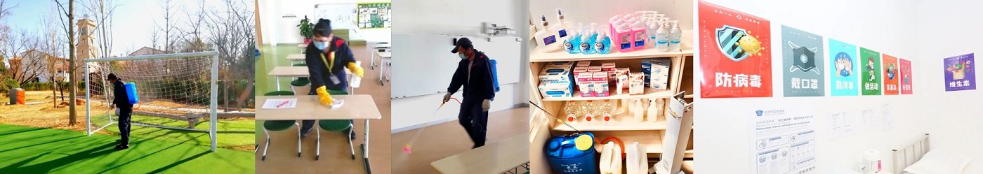 北京德闳学校特成立防疫小组,从多方面开展疫情管控工作,包括入校关卡的设定,应急准备工作,抗疫物资采购,消毒清洁工作,校园多维度防疫宣传,应急演练,组织培训及错峰开学方案等,旨在为学生们提供一个安全、清洁、舒适的校园环境。