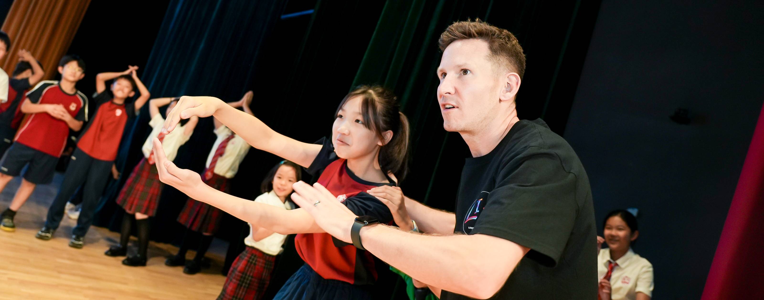 在小学部工作坊中,孩子们通过音乐剧经典曲目《马蒂尔达》 《狮子王》 《Grease(油脂)》的片段学习,开启了表演艺术的大门。导师们通过有趣的游戏和生动示范,让孩子们在轻松愉快的氛围中学习演唱、舞蹈和表演,最重要的是释放天性、大胆表达。几乎所有的孩子都经历了从工作坊开始时的害羞到大胆表达自我、享受舞台的过程, 最后一年级和三年级的学生还在校会上给全体小学生带来了惊喜的即兴表演快闪。